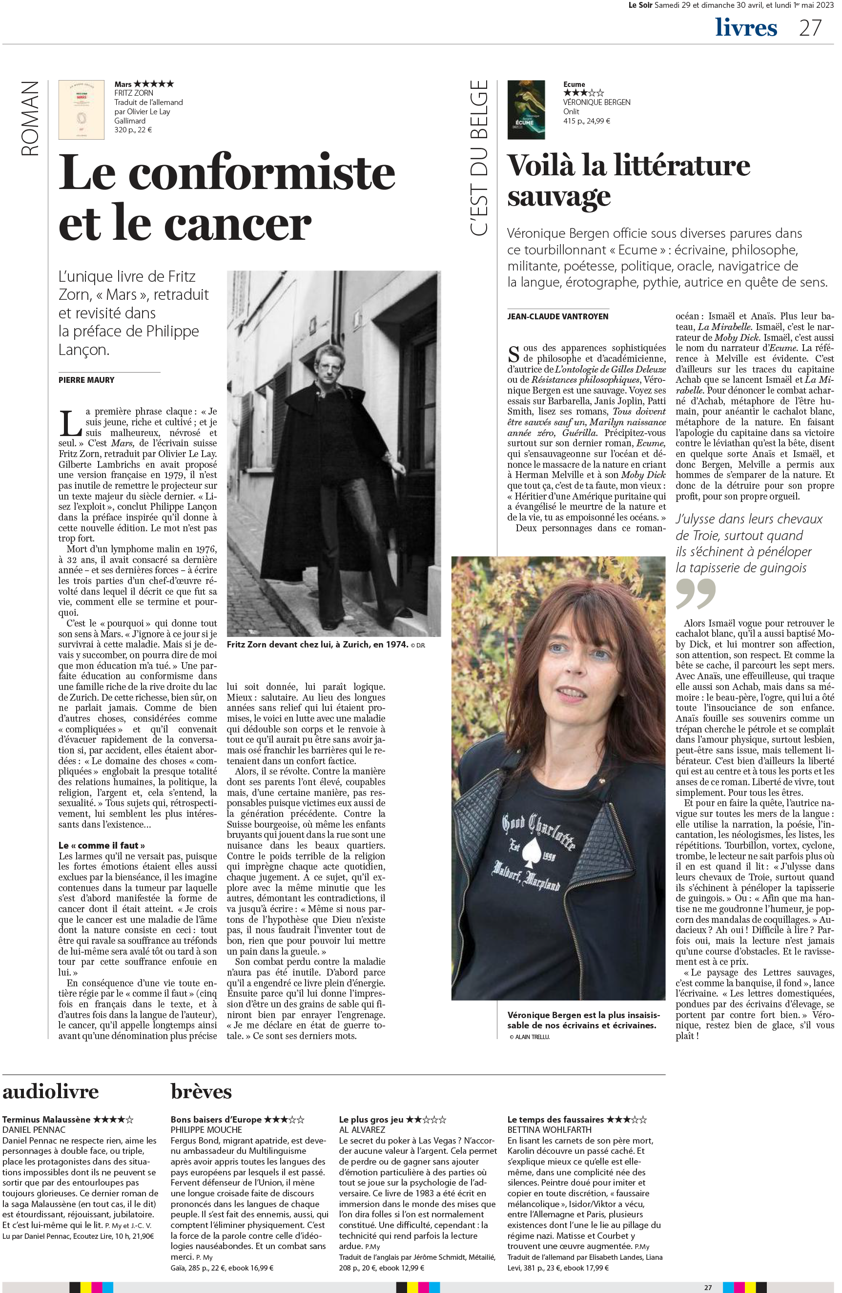 "Voilà la littérature sauvage" Jean-Claude Vantroyen, Le Soir