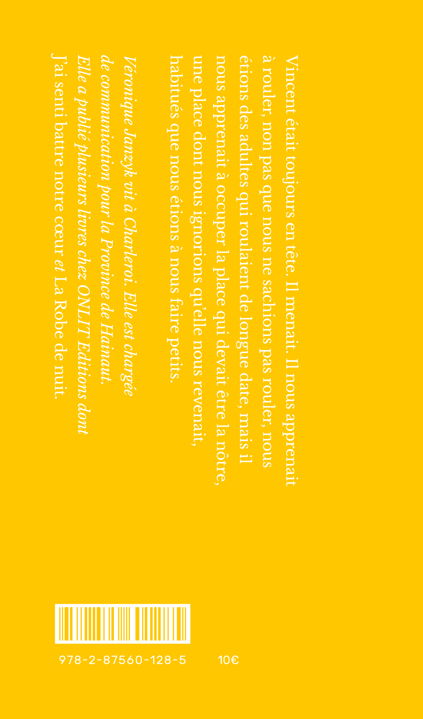 Vincent était toujours en tête. Il menait. Il nous apprenait à rouler, non pas que nous ne sachions pas rouler, nous étions des adultes qui roulaient de longue date, mais il nous apprenait à occuper la place qui devait être la nôtre, une place dont nous ignorions qu’elle nous revenait, habitués que nous étions à nous faire petits.